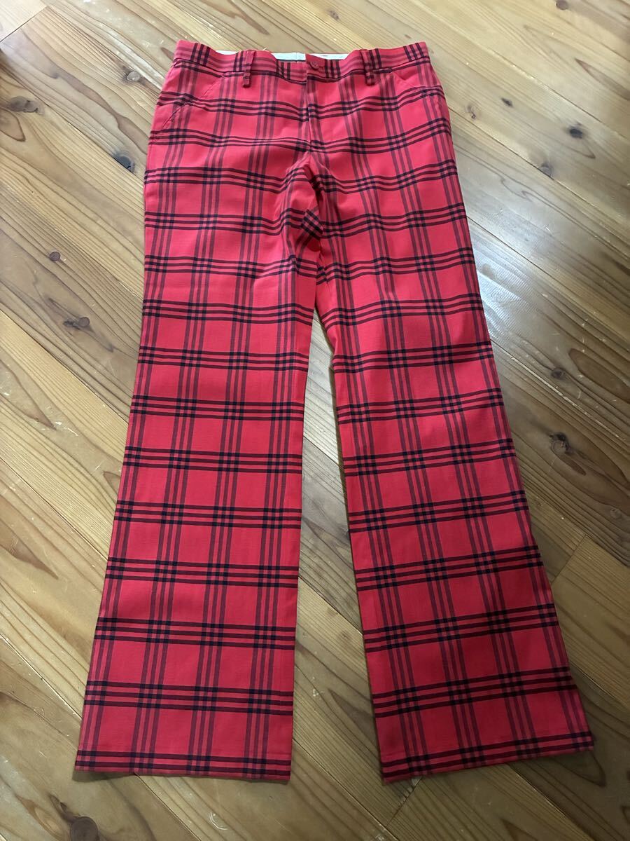 > 送料込み!! YONEX チェック 長ズボン ゴルフパンツ 赤 79サイズ ストレッチ GOLF ゴルフウェアー ヨネックス ロングパンツ