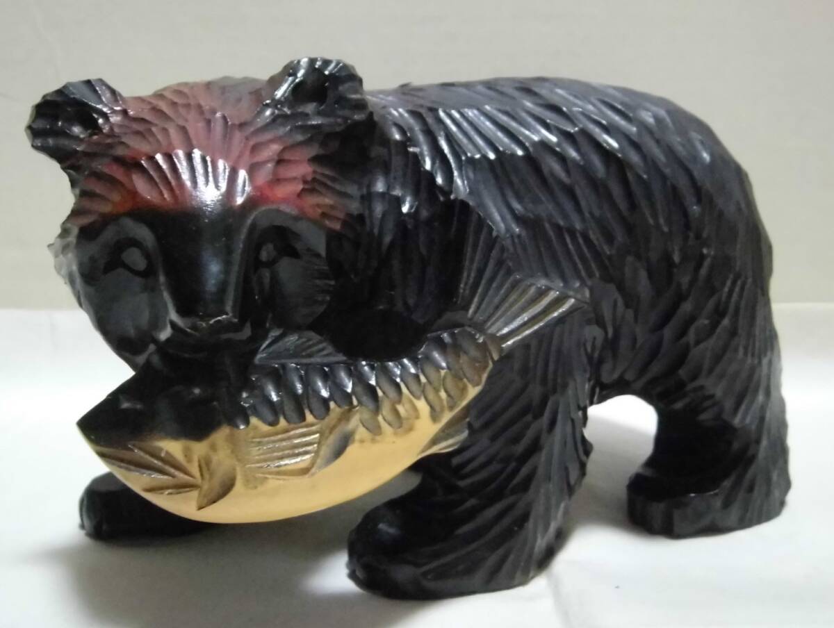 - 古い 熊 木製 中ぐらい 木彫り 鮭有り 北海道 アイヌ クマ 熊ぼっこ 伝統工芸品 郷土玩具 飾り物 置物 縁起物 お土産 レトロ (赤A)