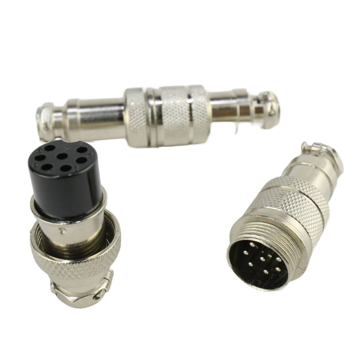 - 7芯/7極 丸型コネクタ/メタルコネクタ 16φプラグ&ジャック(台座) 1組(複数対応可能) 中継(延長)用コネクタ オスメスセット