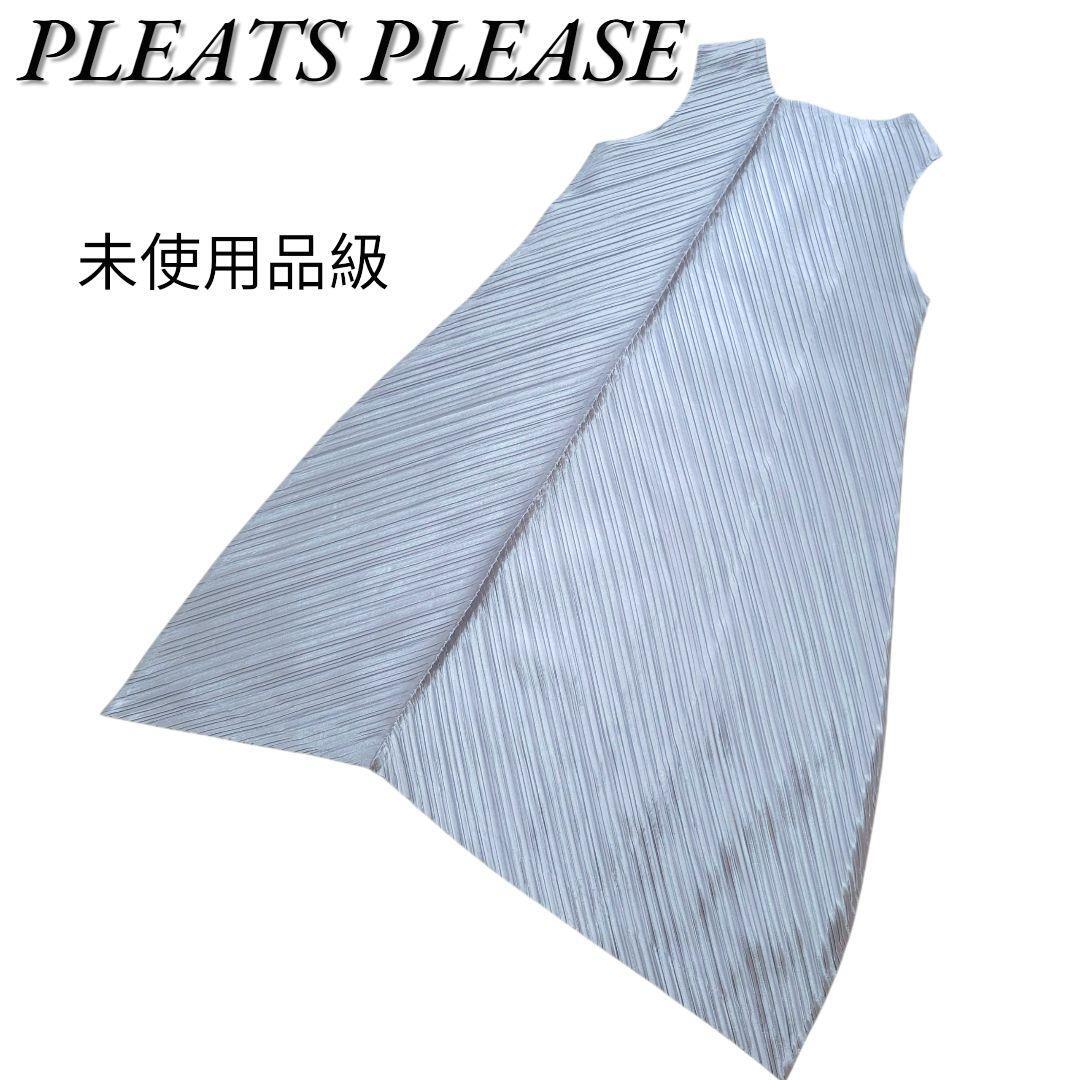 - 未使用品級 プリーツプリーズ 光沢生地 斜めプリーツ アシンメトリー ノースリーブ ワンピースPLEATS PLEASE ISSEY MIYAKE イッセイミヤケ
