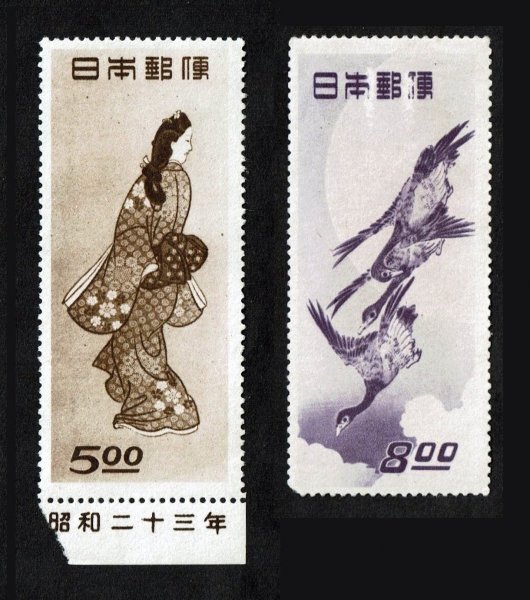 > P262■【糊落ち】1948年 切手趣味週間記念 2種(見返り美人、月に雁)■未使用・良好