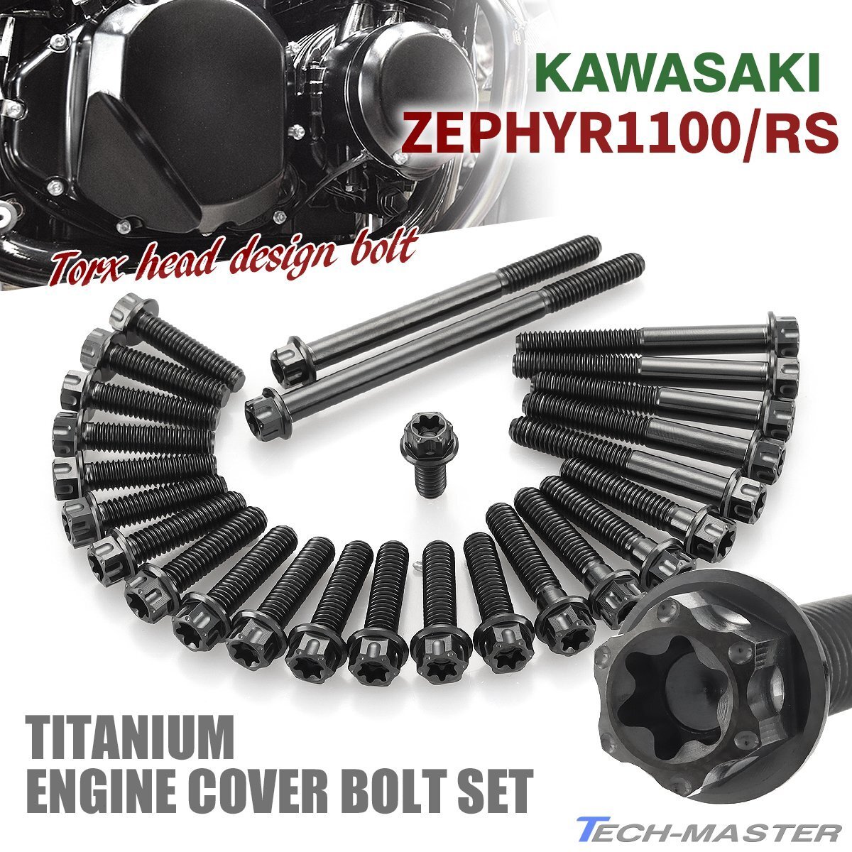 - ゼファー1100 RS エンジンカバーボルト 26本セット チタン製 トルクスヘッド カワサキ車用 ブラック JA8160