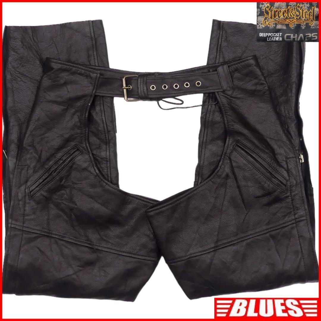 - 即決★Street&steel★XL レザーチャップス レザーパンツ ストレートアンドスティール メンズ 黒 本革 ライダースパンツ 本皮 パンクロック