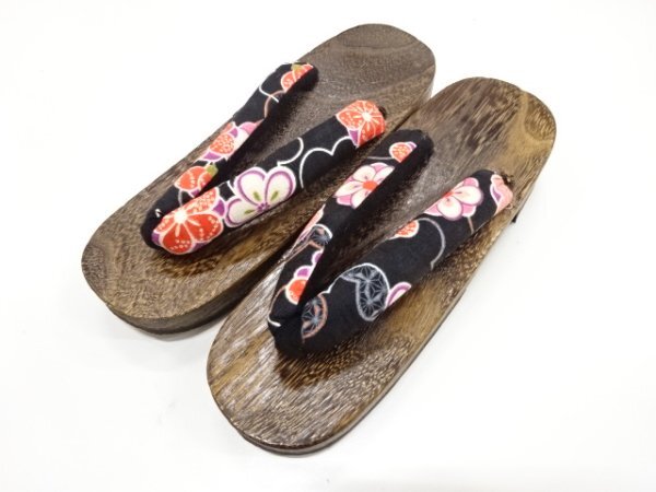 - ys7517402; 未使用品 花模様鼻緒 桐下駄(24センチ)【着】