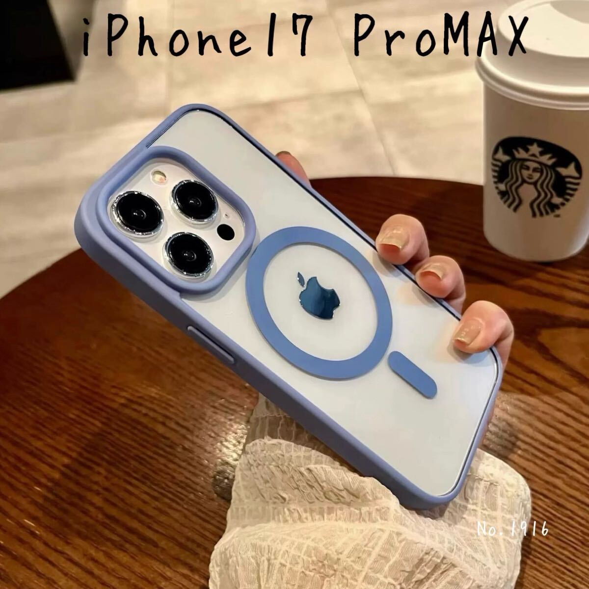 > 新品!iPhone17ProMax ケース ブルー クリア 磁気 ワイヤレス充電 保護