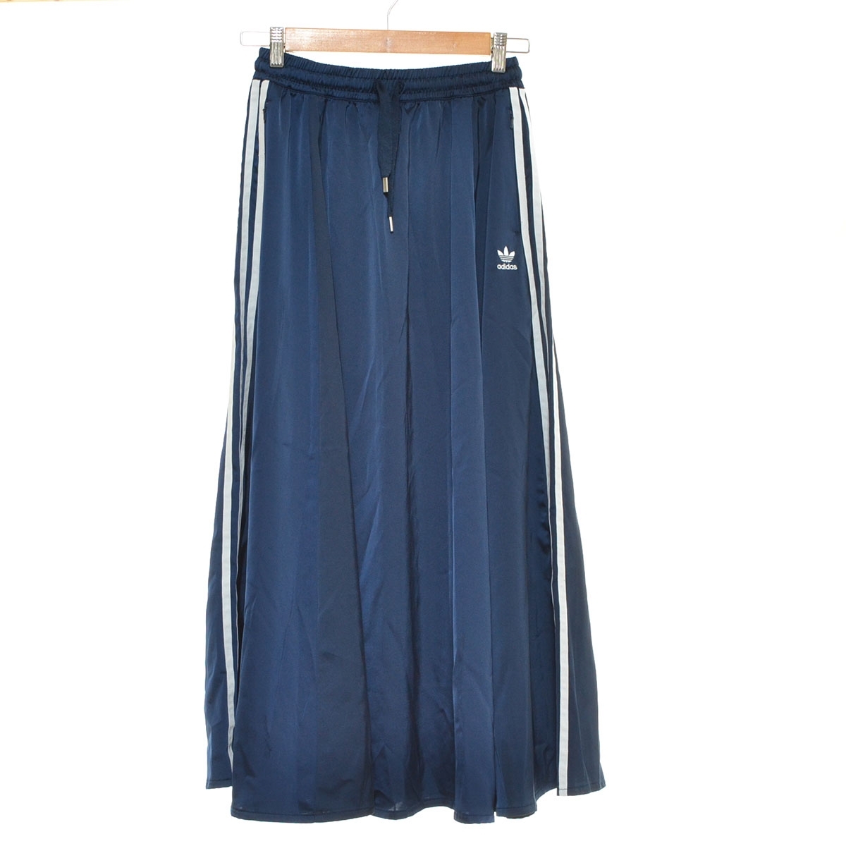 - ■543858 adidas Originals アディダス オリジナルス ● ロングサテンスカート LF0045 サイズL ドレープ フレア レディース ネイビー