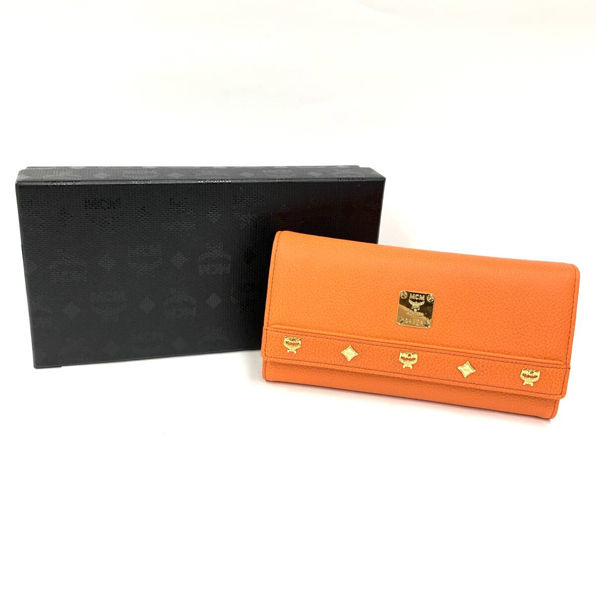 - SD0829 新品未使用! 格安! MCM エムシーエム スタッズ レザー 三つ折り財布 ゴールド金具 オレンジ