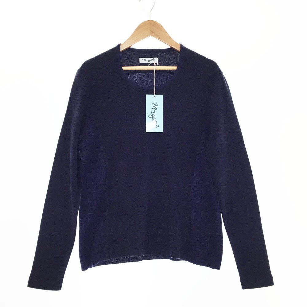 > ★未使用 maya2 マヤツー 長袖 Uネック スムースニット プルオーバー 9号-11号 レディース ネイビー セーター スエード風 1BB/93731