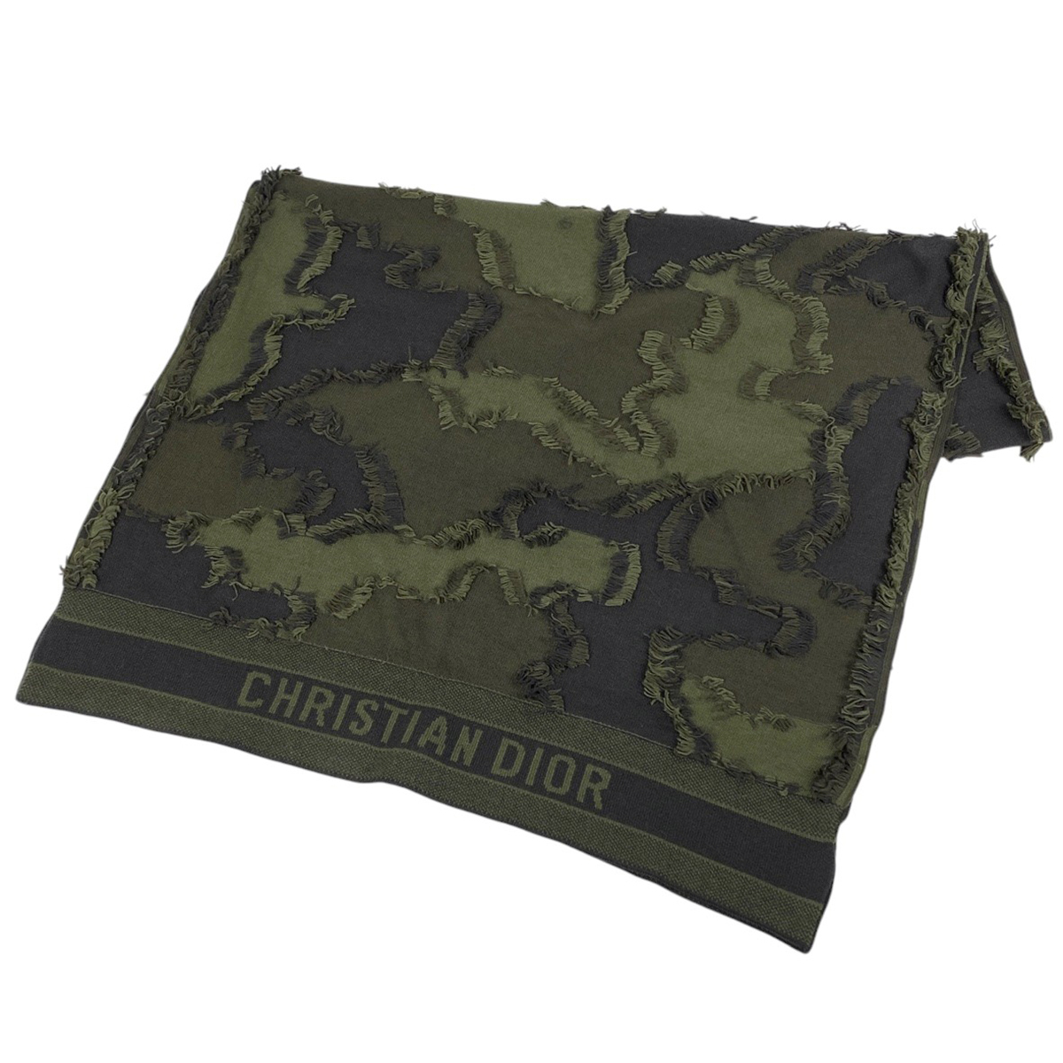 - クリスチャンディオール Christian Dior カモフラ柄 ショール 迷彩 大判 ストール ウール カシミヤ ナイロン グリーン レディース 【中古】