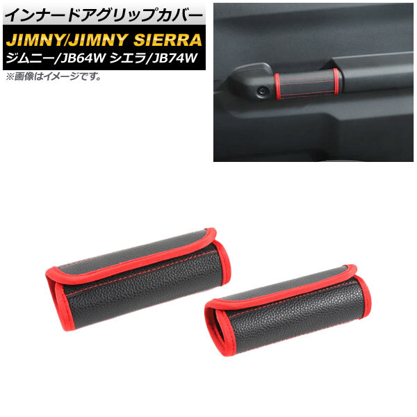 - インナードアグリップカバー スズキ ジムニー/ジムニーシエラ JB64W/JB74W 2018年07月~ ブラック×レッド PUレザー