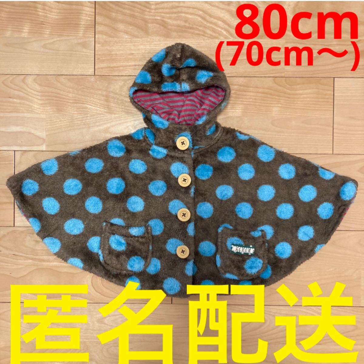 - 70cm〜80cm フード付きポンチョ ケープ ジャケット アウター 上着 男の子 女の子 水玉 モコモコ 0歳 1歳