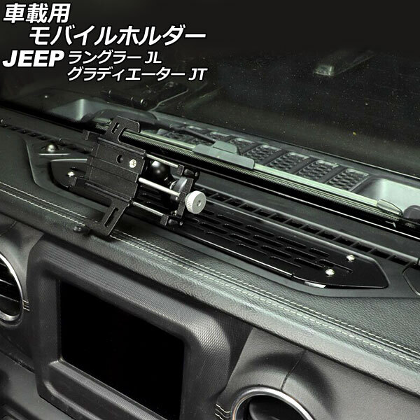 - 車載用モバイルホルダー ジープ ラングラー JL20L/JL36L/JL36S 2018年10月~ ブラック アルミ合金製 Bタイプ ダッシュボードトレイ装着