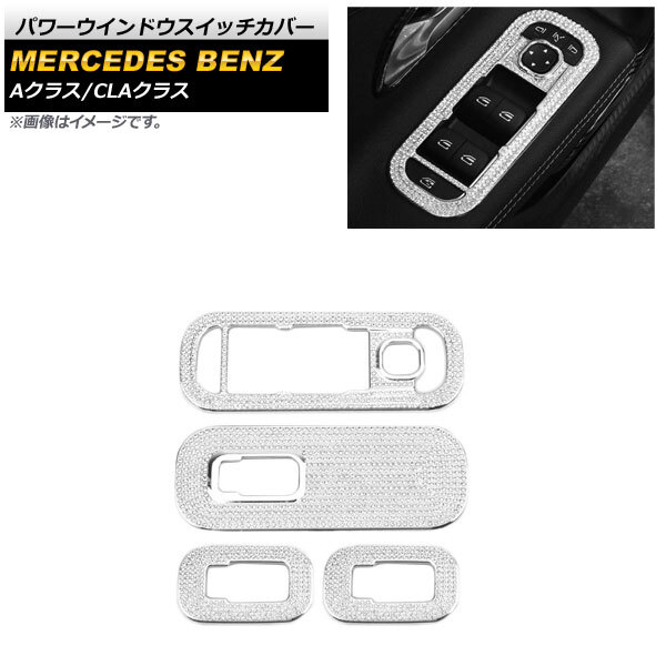 > パワーウインドウスイッチカバー シルバー ラインストーン付き メルセデス・ベンツ Aクラス W177/V177 A180,A200,A250 2018年10月~