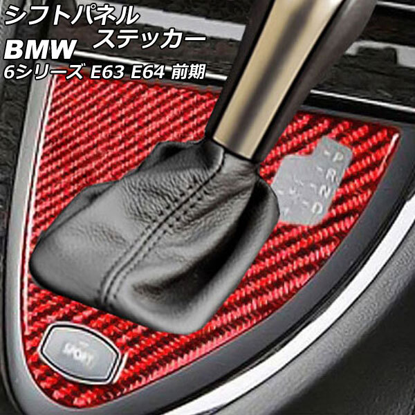 - シフトパネルステッカー BMW 6シリーズ E63/E64 前期 2003年10月~2007年10月 レッドカーボン カーボンファイバー製 右ハンドル用