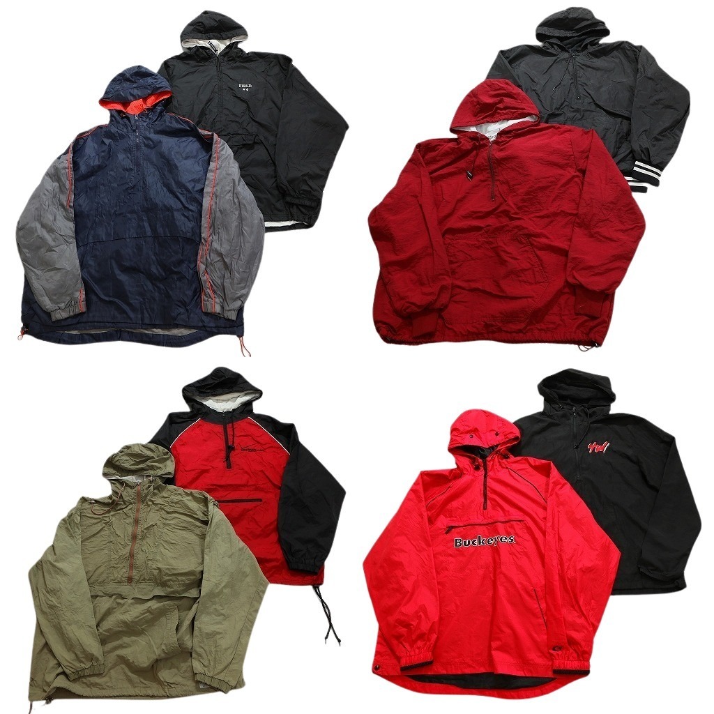 > 古着卸 まとめ売り アノラックパーカー ジャケット 8枚セット (メンズ XL ) 切替 ハーフジップ プルオーバー 刺繍 中古 古着 NB6862