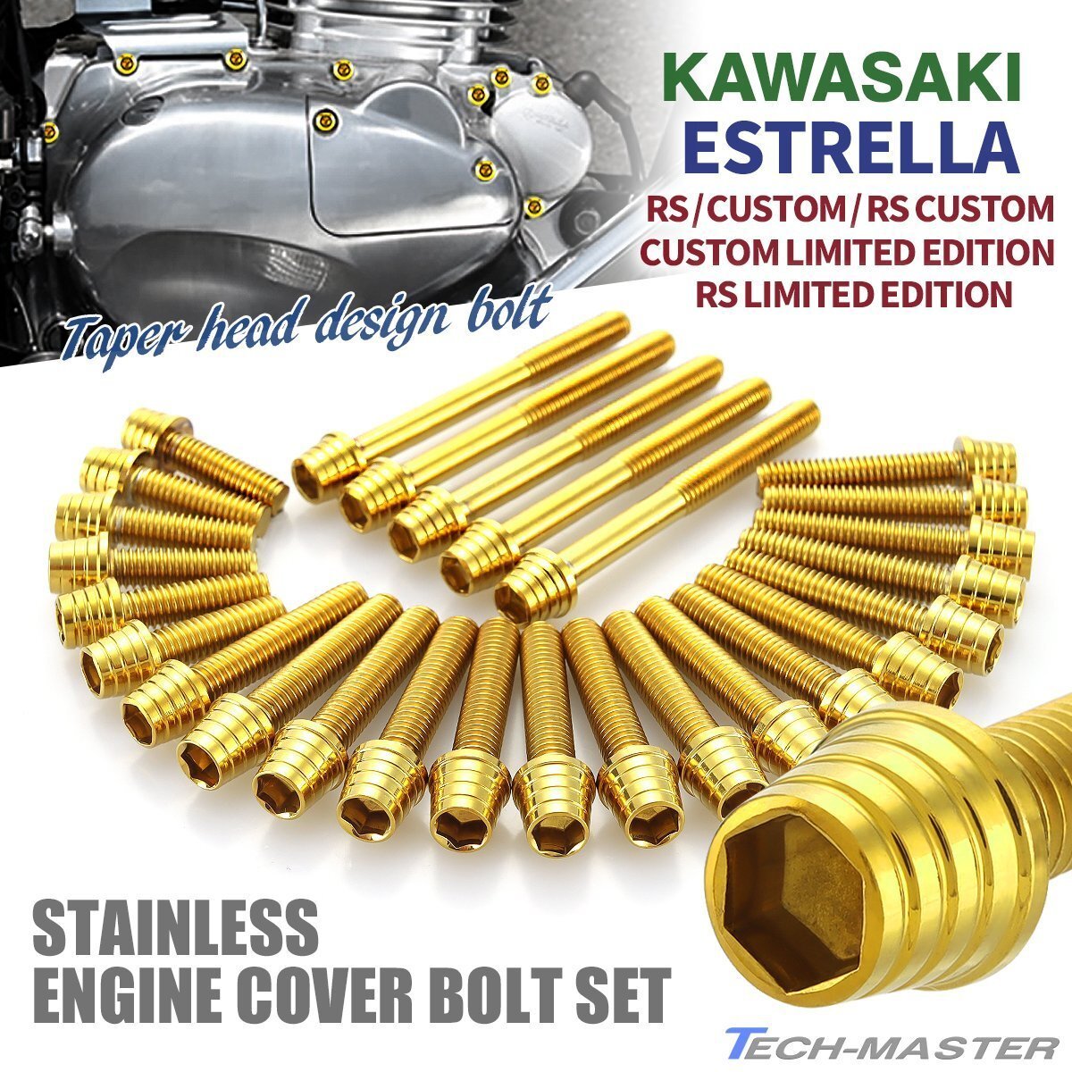 - エストレヤ RS CUSTOM等 エンジンカバーボルト 27本セット ステンレス製 テーパーシェルヘッド カワサキ車用 ゴールドカラー TB8252