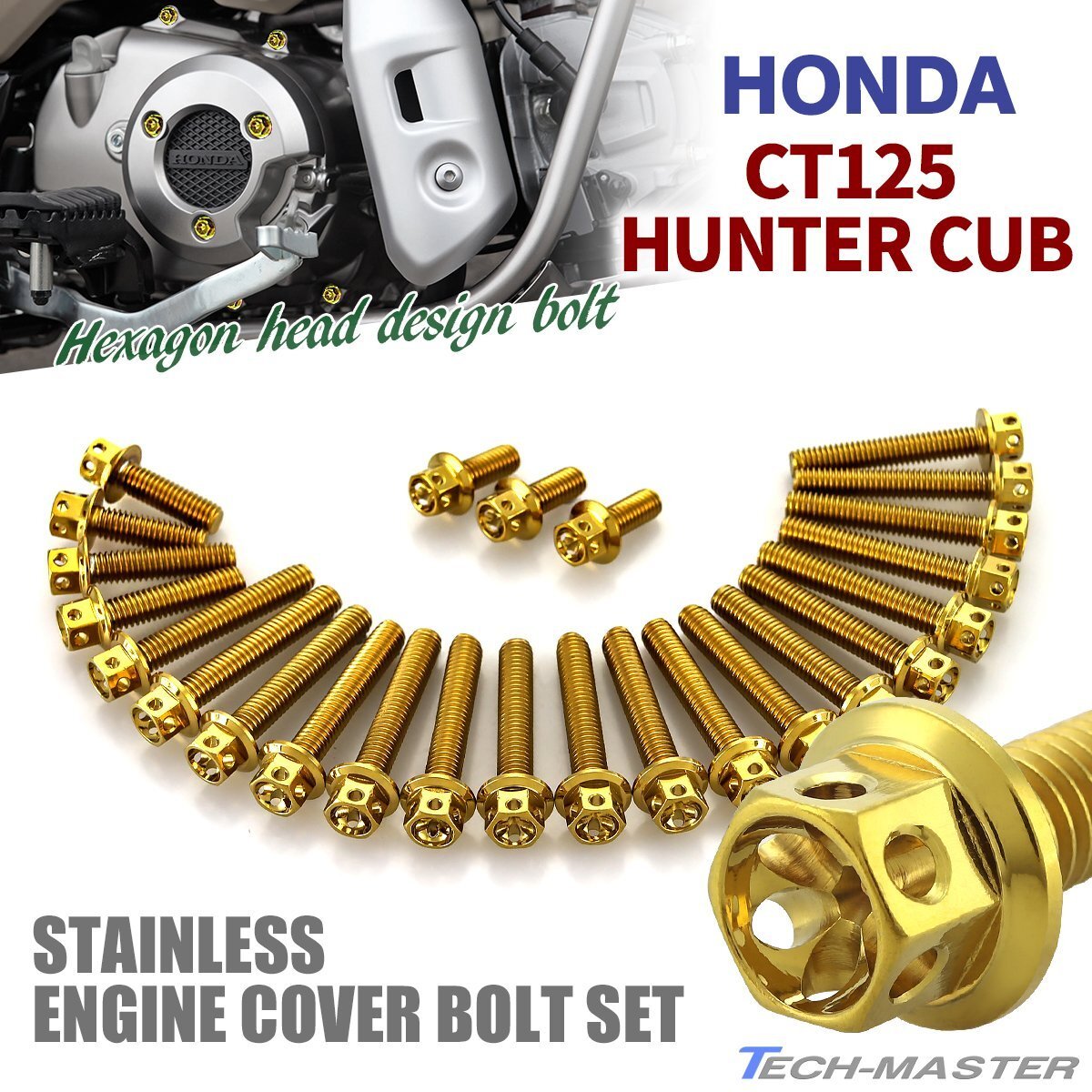 - CT125 ハンターカブ JA65 エンジンカバー クランクケース ボルト 25本セット ステンレス製 ホンダ車用 ゴールドカラー TB12155