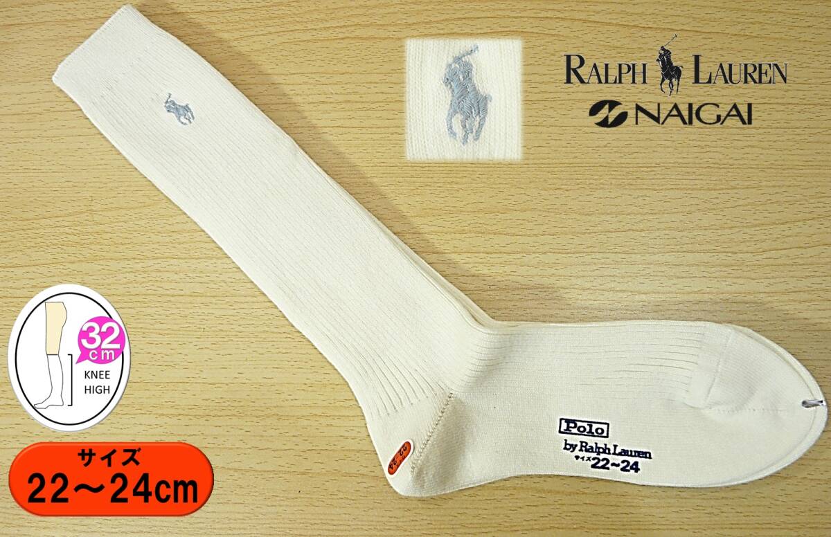 - 【レッグウェア★未使用品】NAIGAI◆POLO Ralph Lauren◆ラルフ◆白 ハイソックス◆2×1リブ◆22-24cm◆32cm丈◆スクールソックス◆BG-SX
