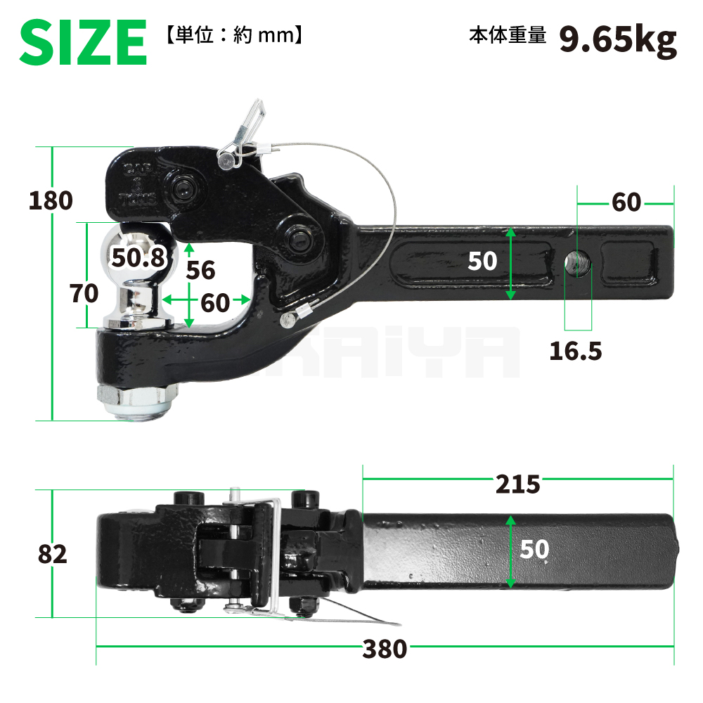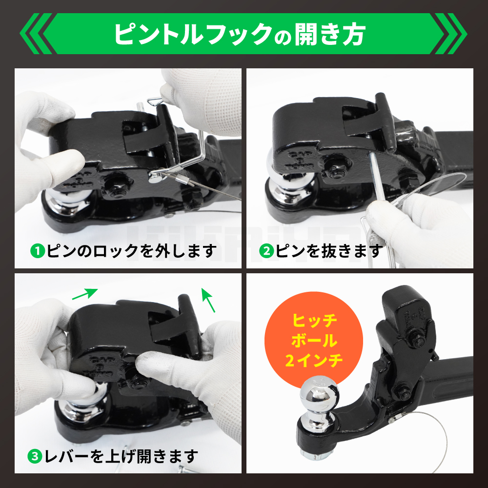 - レシーバーマウント ピントルフック ヒッチボール 2インチ 総牽引重量 12000LBS 5.4トン スプリング式ロックアーム