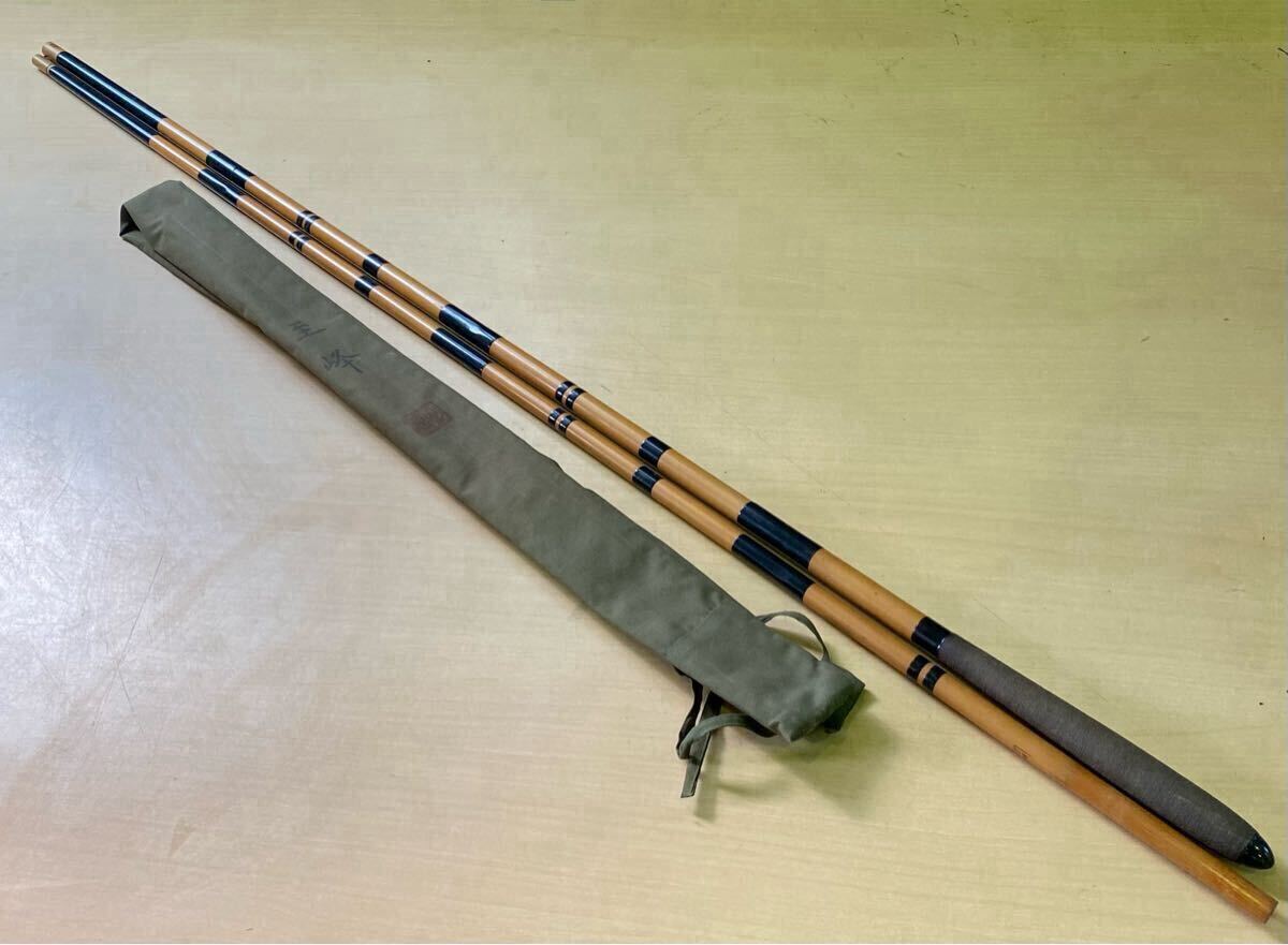 - 竹竿 至峰 150 15尺? 銘竿 5継 紀州竹竿 ヘラ竿 竿袋付き 現状品 I36N