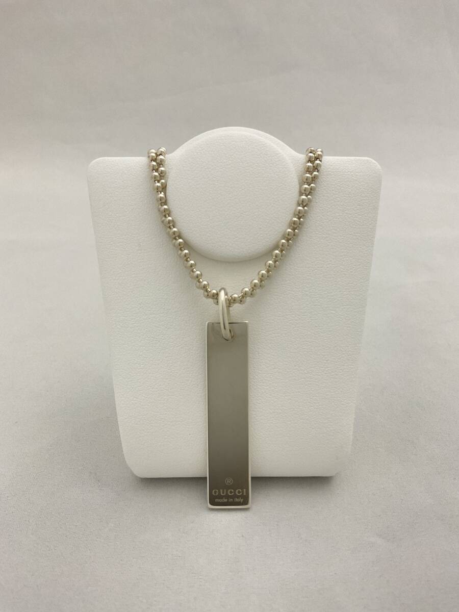 - GUCCI グッチ ダブルボールチェーン プレート ネックレス シルバー アクセサリー 925【B948586】