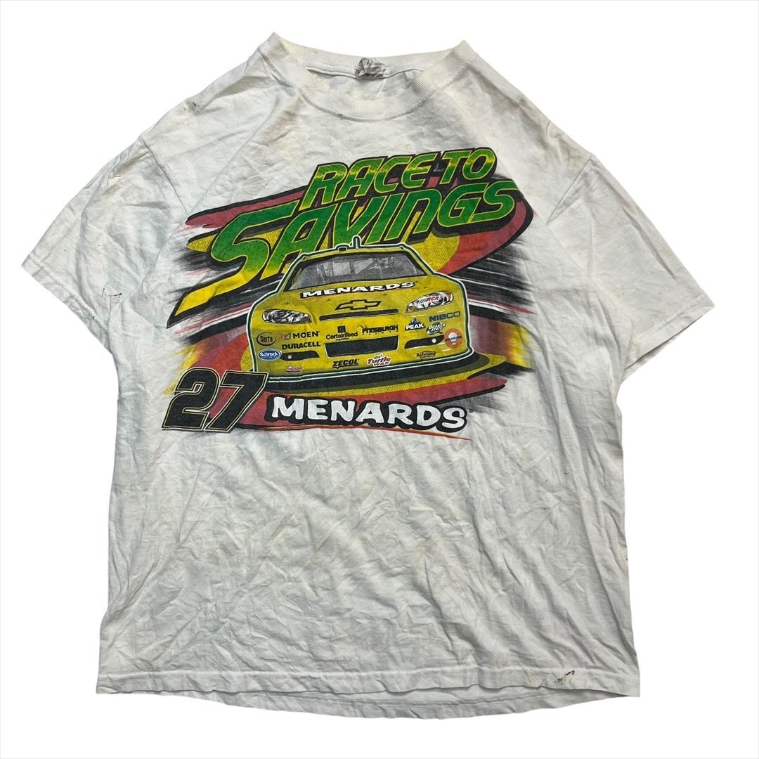 > Vintage 00s~ JERZEES Nascar チーム メナード Race To Savings Tシャツ 半袖 メンズ M ホワイト 古着 Y2K ビンテージ ヴィンテージ