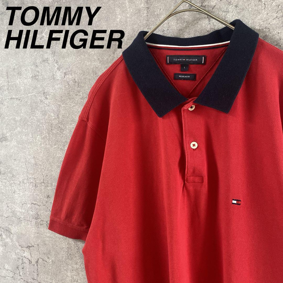 - TOMMY HILFIGERポロシャツ 切り替え襟ブランドロゴ半袖 鹿子Lメンズ