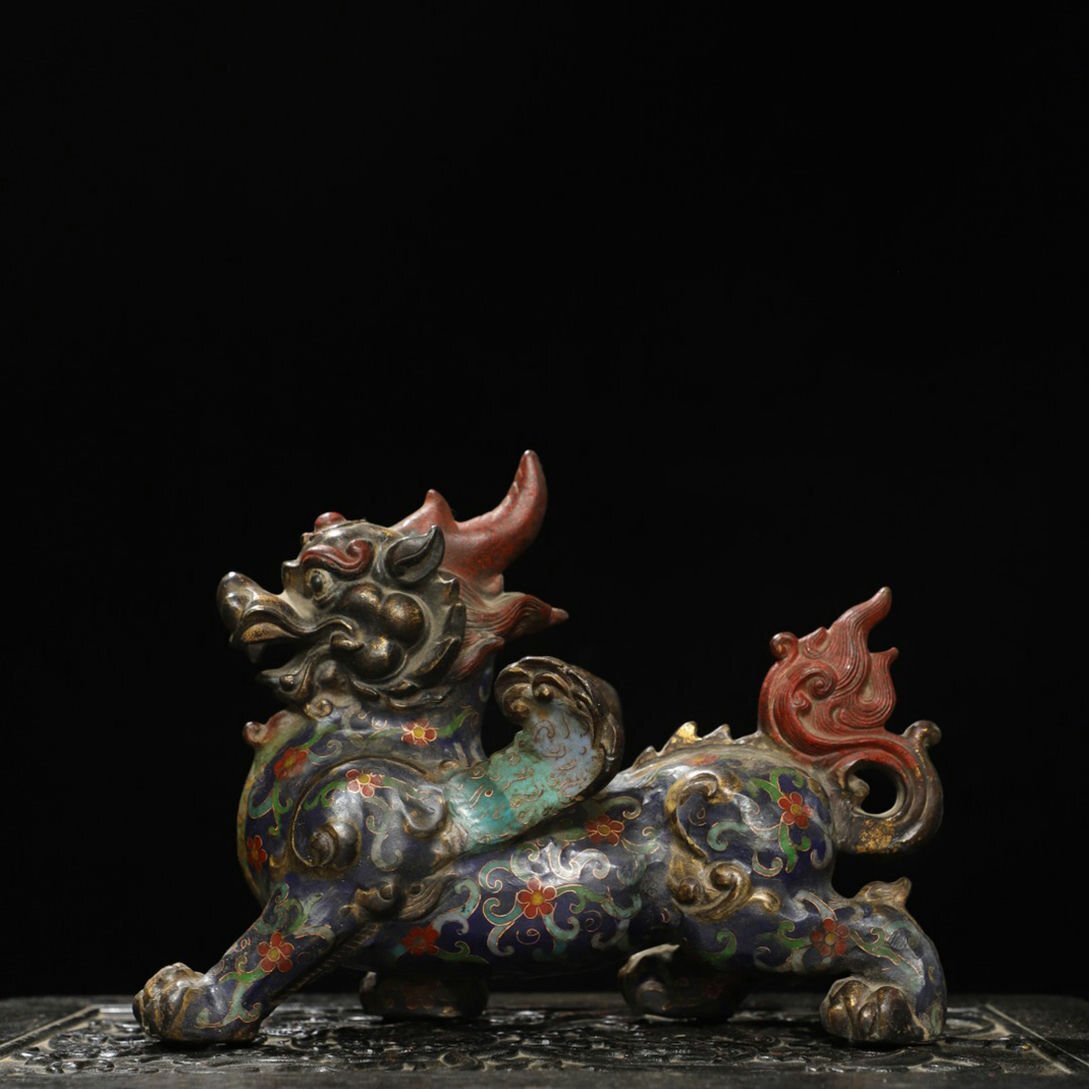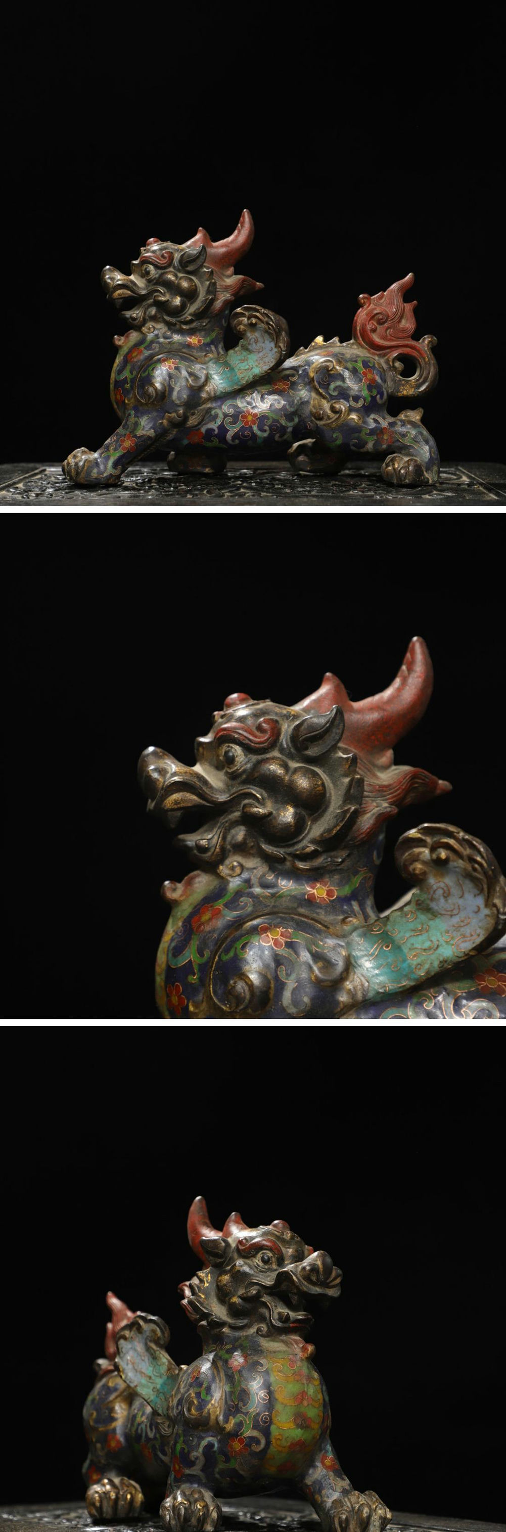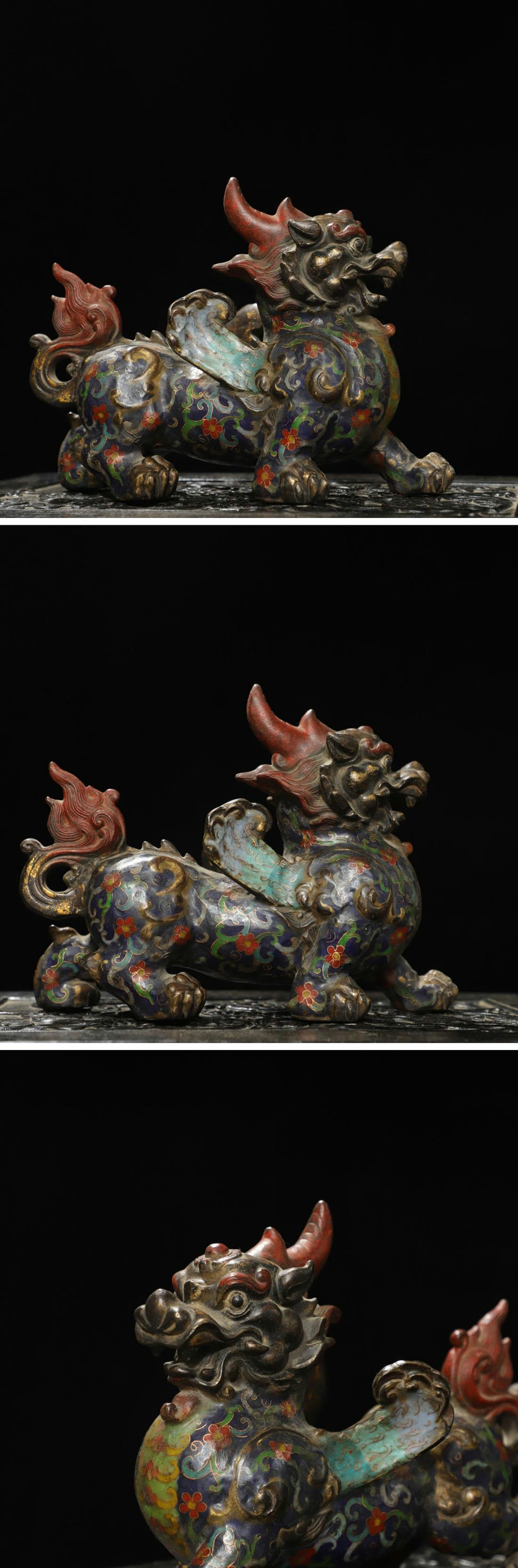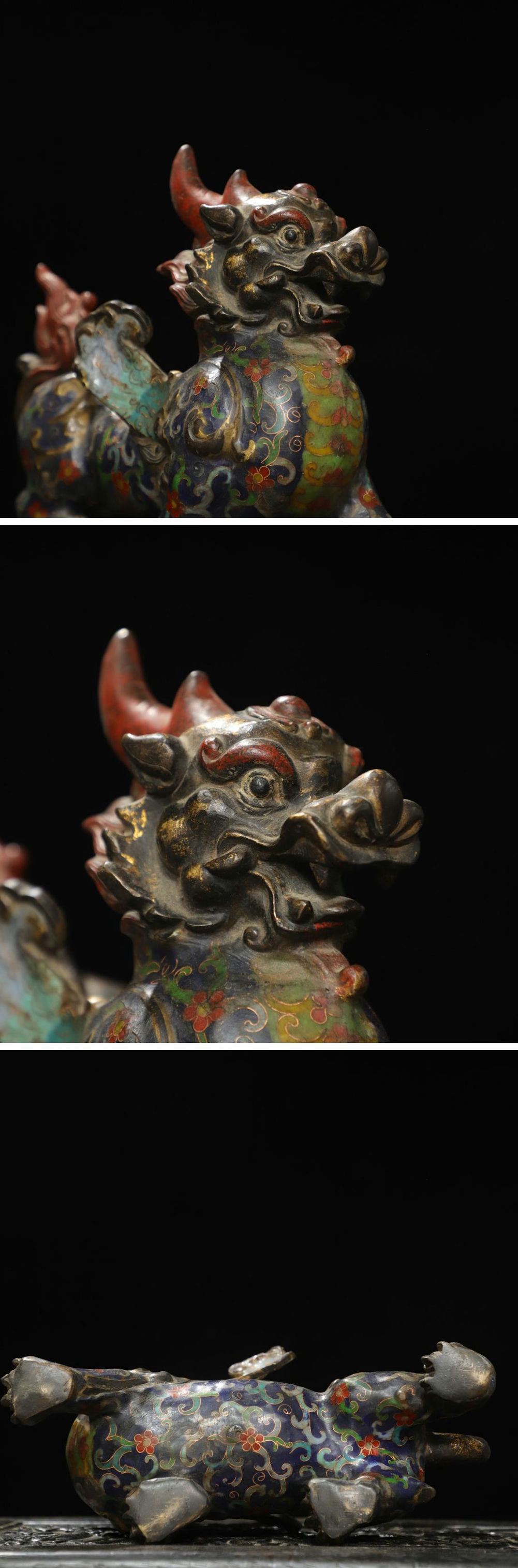 - ◆羽彰・古美術◆Y8039清時代 銅製景泰藍嵌絲琺瑯彩瑞獣 細密細工★古置物★古賞物★古擺件★蒐集家放出★唐物