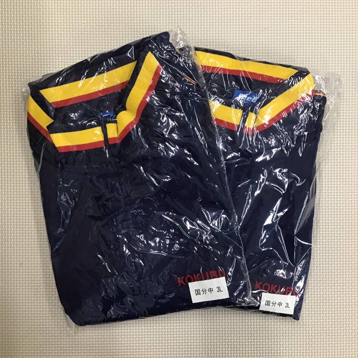 > W283 新品【国分中学校】(旧) 長袖スクールスポーツウェア サイズ 3L 2枚/Sneed Sanwa/紺×黄×赤/ジャージ/体操着/運動着/中学生/男女兼用