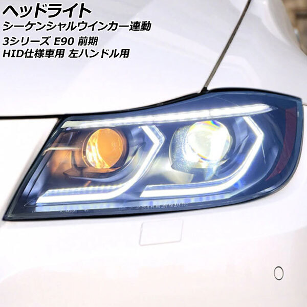 > ヘッドライト BMW 3シリーズ E90 前期 HID仕様車用 2005年04月~2008年09月 左ハンドル用 シーケンシャルウインカー連動