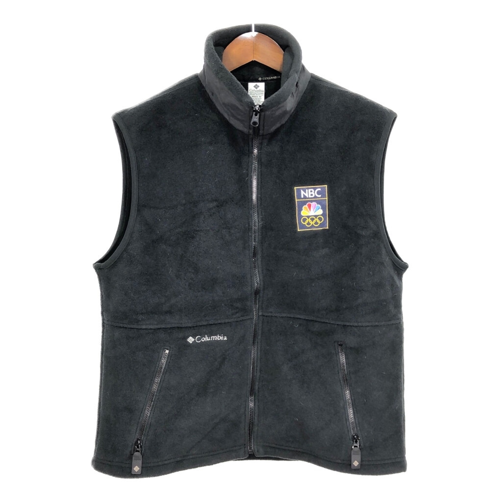 - 90年代 USA製 Columbia コロンビア オリンピック フリースベスト 企業ロゴ アウトドア ブラック (メンズ M) 中古 古着 Q9449