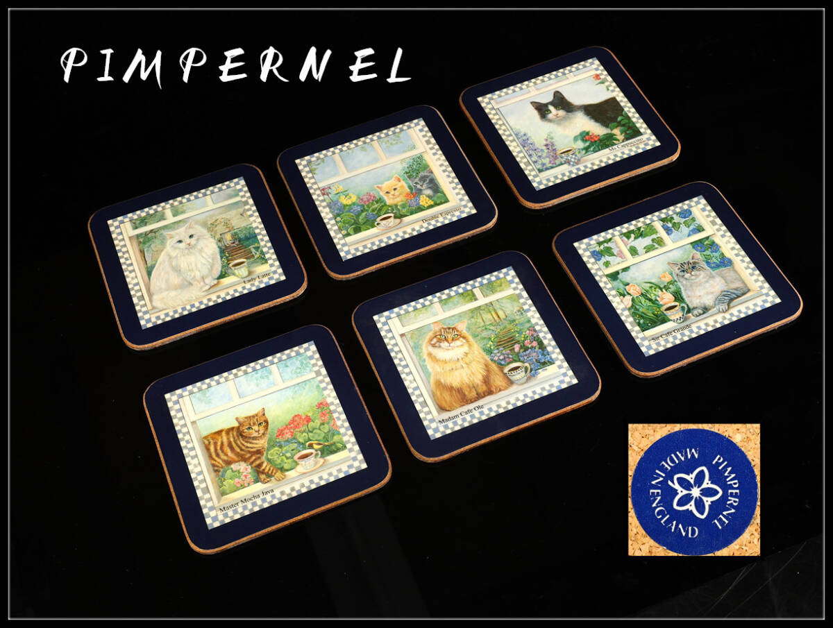 - 久1146 西洋 英国製 ピンパーネル (PIMPERNEL) 猫図 コースター 6枚セット