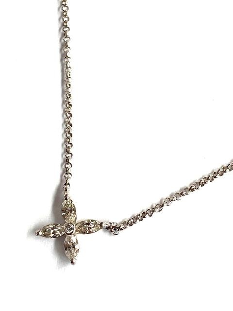 - 【即決/40cm】 K18WG D0.30 フラワー ダイヤモンド ネックレス 宝石 ジュエリー ホワイトゴールド アクセサリー 花びら 3.0g