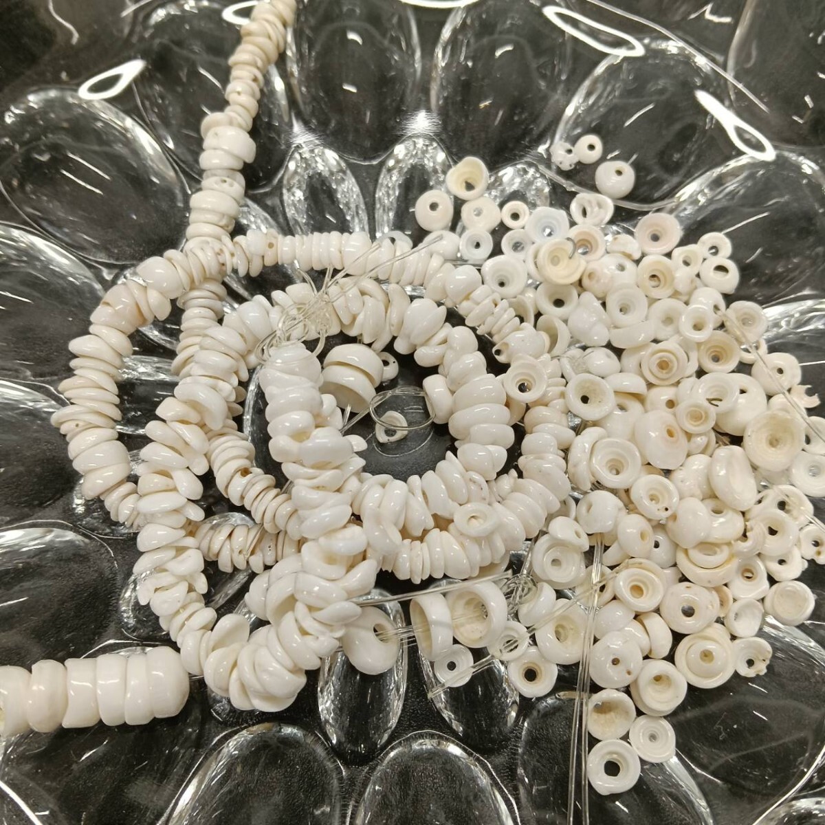> L46 ☆未使用 大量 サザレ チェコ ガラスビーズ 44g 5~8mm ラウンド ホワイト 白 大粒 ヴィンテージ パーツ アクセサリー ネックレス B-426