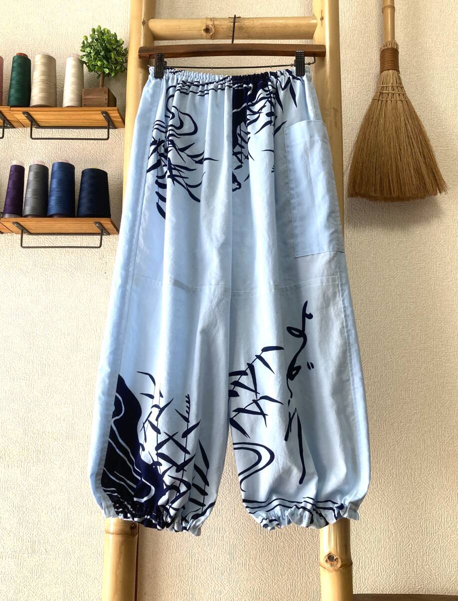 - 鎌倉まるか堂 浴衣リメイク 涼み 白藍よど川のもんぺ風 ●綿 ●ゆったりシルエット ●M~L●裾ふわパンツ●洗濯OK