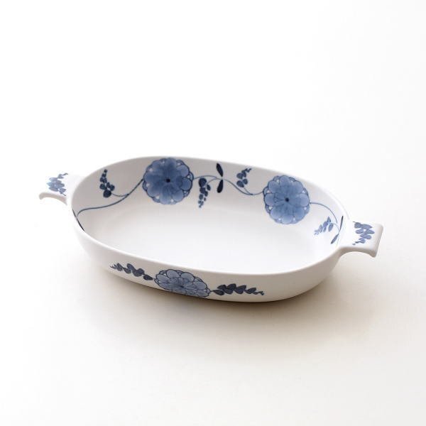 - グラタン皿 お皿 おしゃれ かわいい 角型 和食器 磁器 陶器 北欧 日本製 花唐草 オーバルグラタン皿 送料無料(一部地域除く) msg9786