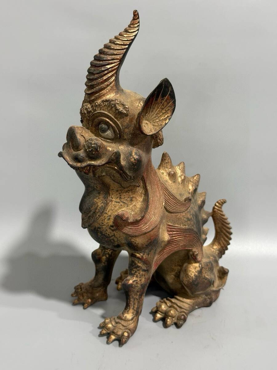 - TM9#8763【3.1】中国骨董 人間国宝 [ 旧蔵老銅金精工ユニコーン置物] 銅器 金属工芸品 古玩收藏 復古 置物 純銅鋳造 開運風水
