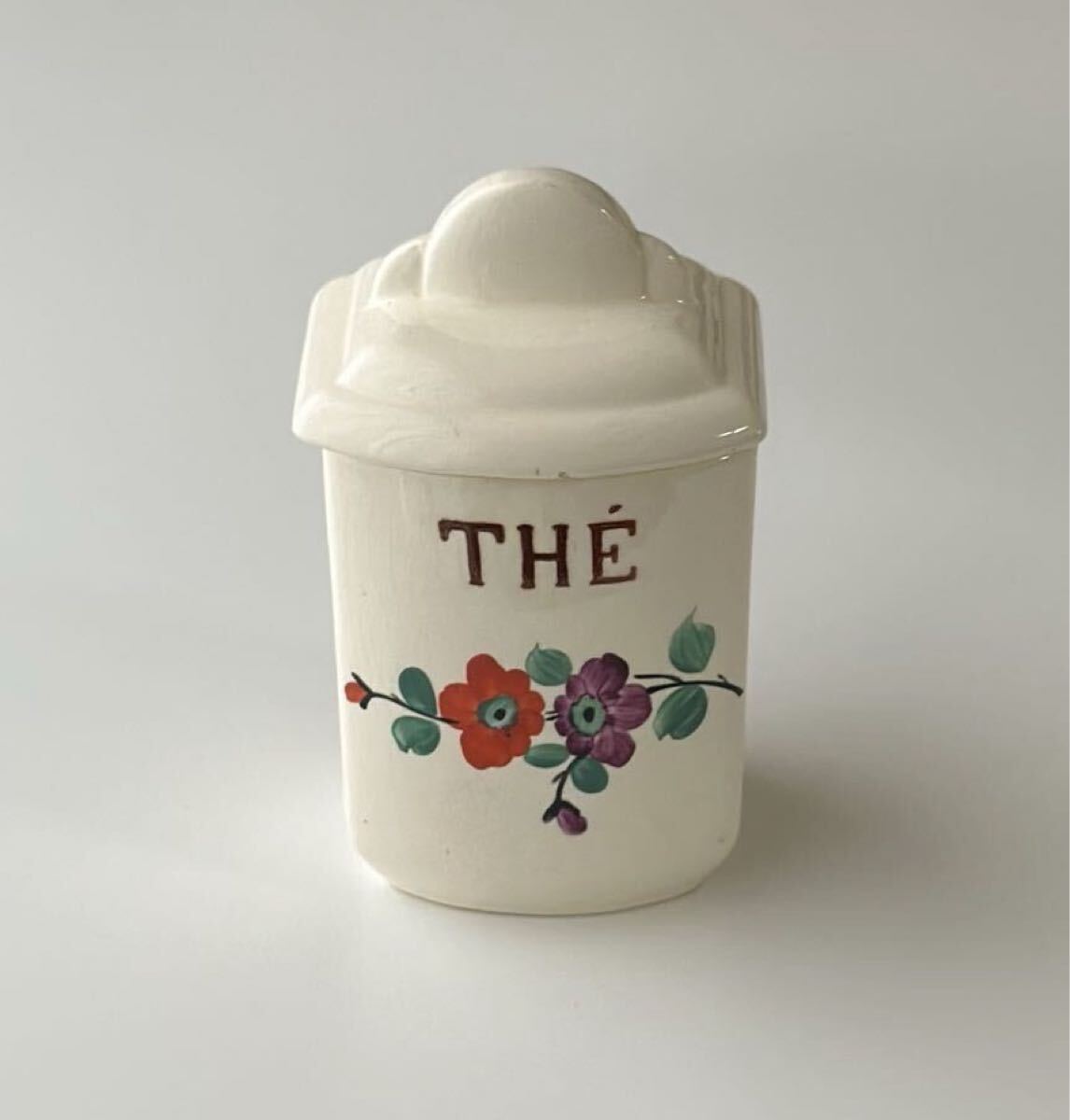 - 【★秋の均一セール】フランス アンティーク Sarreguemines サルグミンヌ 陶器のキャニスターポット “THE” 紅茶入れ 調味料入れ