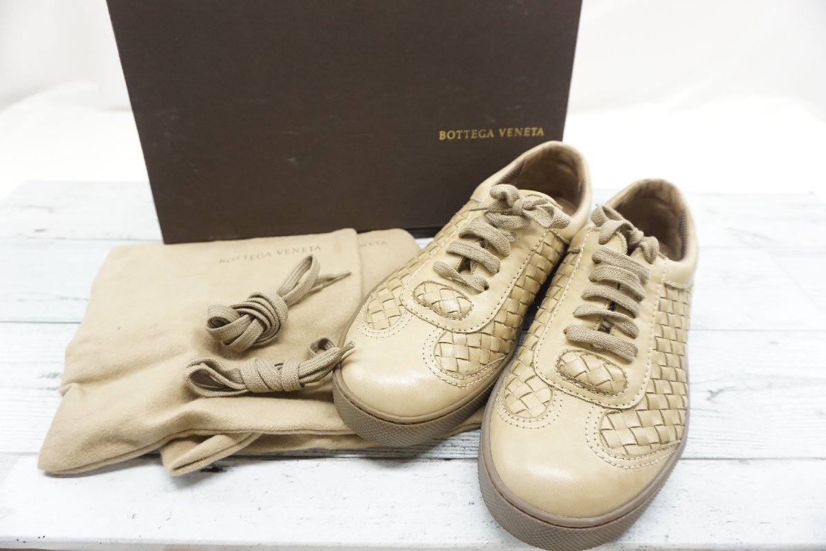 - ★【B送900円】2392 VOTTEGA VENETA ボッテガ イントレチャート メンズ レザースニーカー ベージュ 皮革 箱・袋・紐付 サイズ箱40?