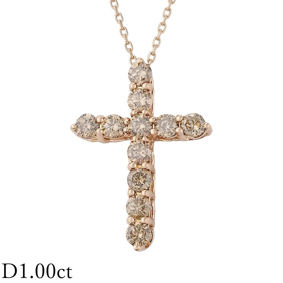 - ダイヤモンド/1.00ct クロス ネックレス K18PG