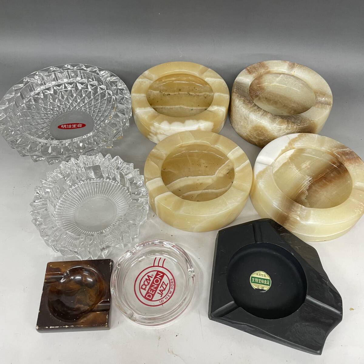 > KF13/46 灰皿 まとめて 9点 大量 セット 大理石 硝子 天然石 喫煙具 昭和レトロ カットガラス 小物入れ インテリア ◎