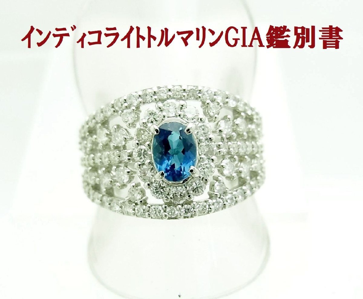 > 特級パライバエイトリータ色 0.370ct 天然インディコライトトルマリン GIA鑑別書付 天然ダイヤ プラチナリング 動画 送料込