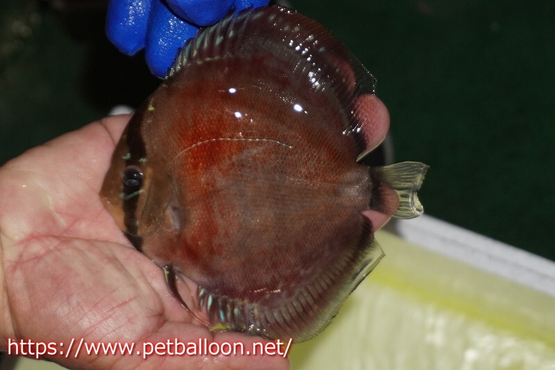 これぞ究極のワイルドクロスディスカス。アマゾン河トロンべタス水系のラーゴイリピシブラッドレッドを交配したワイルドF4個体です。イリピシ独特の赤みと美しいラウンドボディを持つ特選個体。その赤みは今後どんどん増してゆくことでしょう。