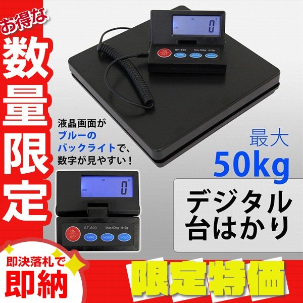 - 【限定セール】新品 デジタルはかり 台秤 最大50kg 計量器 電池 スケール 液晶バックライト オートパワーオフ 風袋引き 米袋 電子はかり