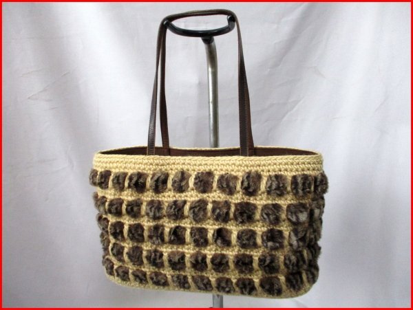 - CHEROSITA/チェロシタ◇横型トートバッグ ウール×フェイクファー BR 持ち手本革 W37cm