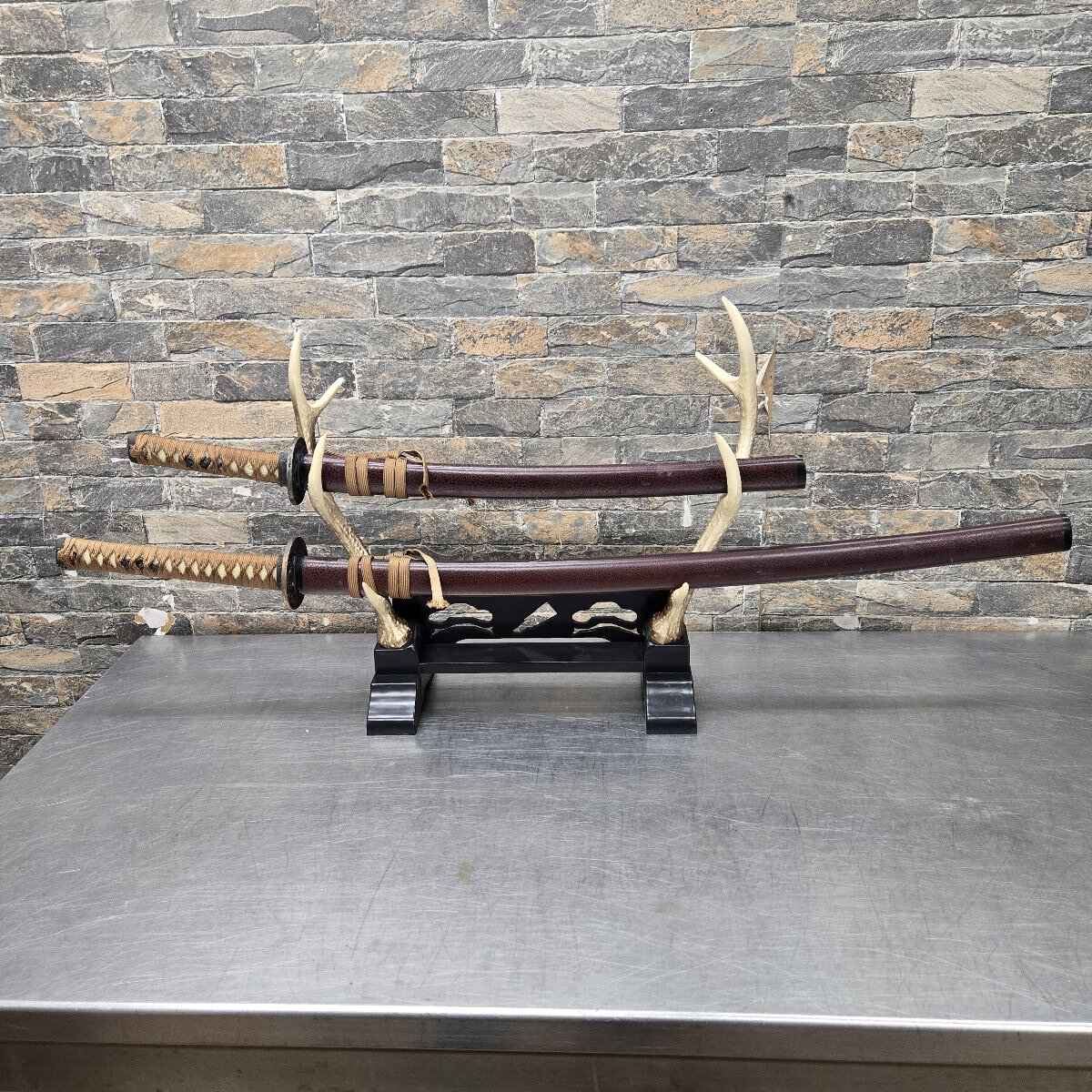 > ♪♪5h081-1 模造刀 美術刀剣 鞘付き 和装武具 台座付き 居合 演舞 鑑賞 稽古♪♪