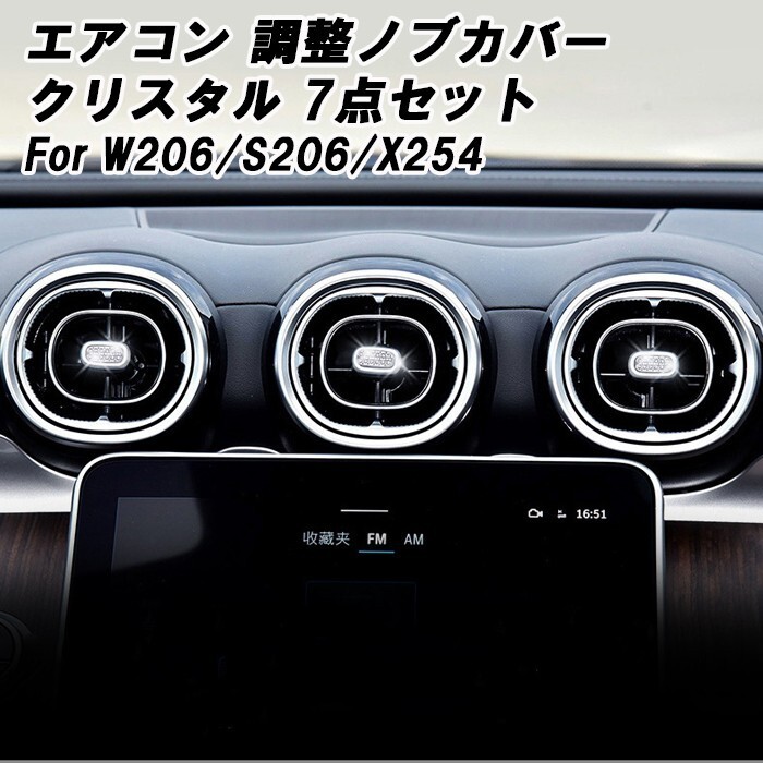 - ベンツ エアコン 調整ノブ カバー クリスタル 7個セット W206 S206 X254 Cクラス GLC スワロフスキー風 ラインストーン つまみ
