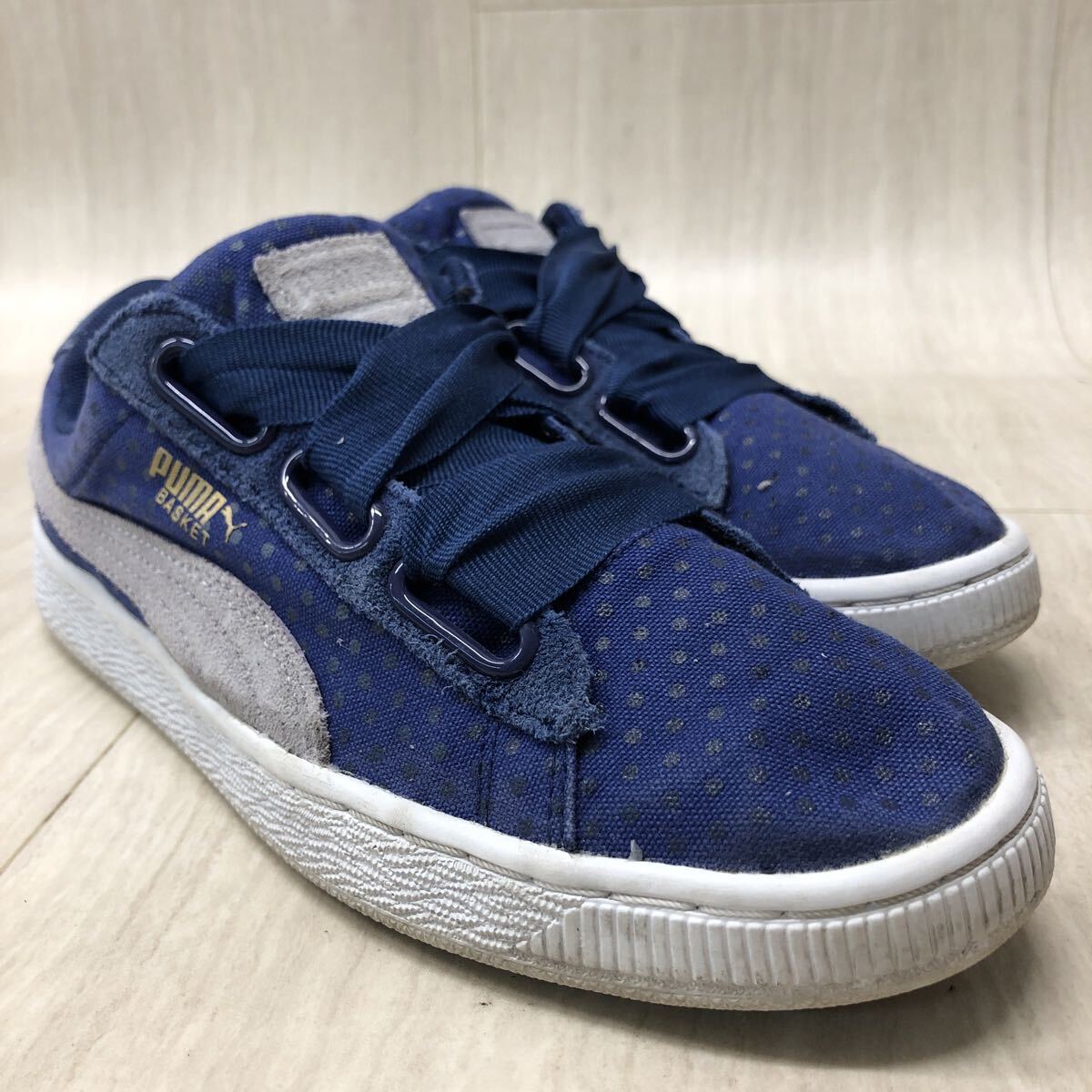 - M288 KT-250828-193 PUMA プーマ BASKET HEART バスケットハート ローカットシューズ リボン レディース ブルー 24cm