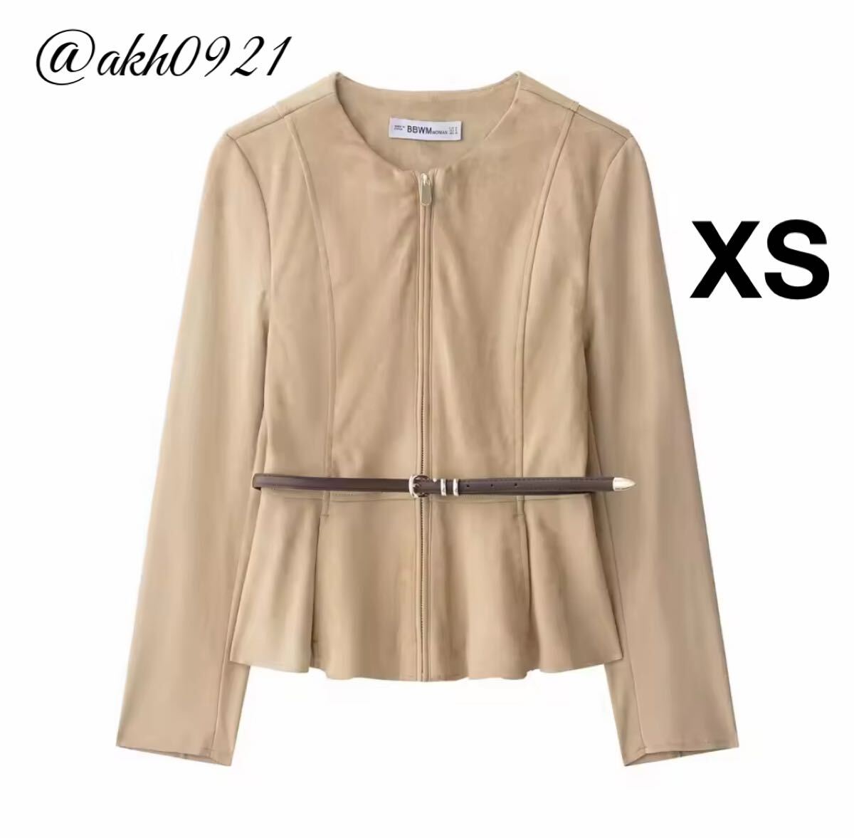 > 新品未使用★2025 秋新作★vintage ヴィンテージ レトロ ベルト付き ノーカラージャケット アウター XSサイズ レディース★ZARA 好きな方に