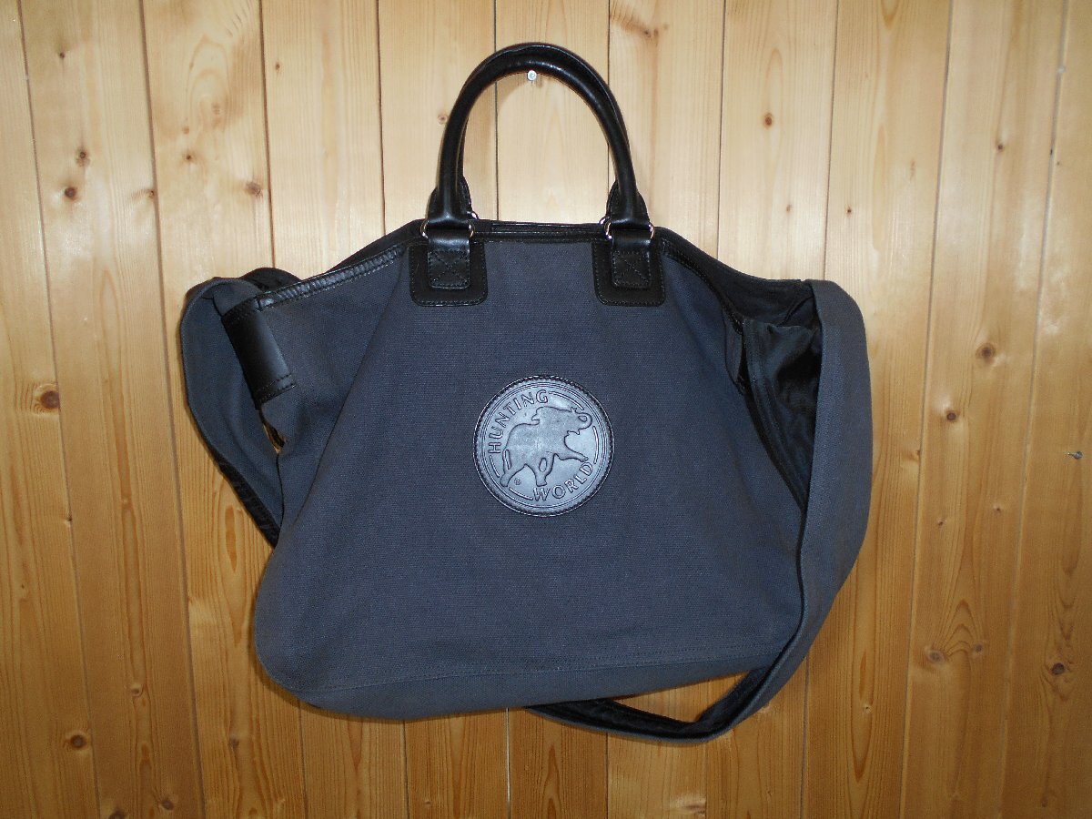 > ◆HUNTING WORLD 2way ショルダーバッグ◆ハンティングワールド イタリア製 ・1・1・3・01 ブラック/グレー キャンバス/レザー 斜め掛け可